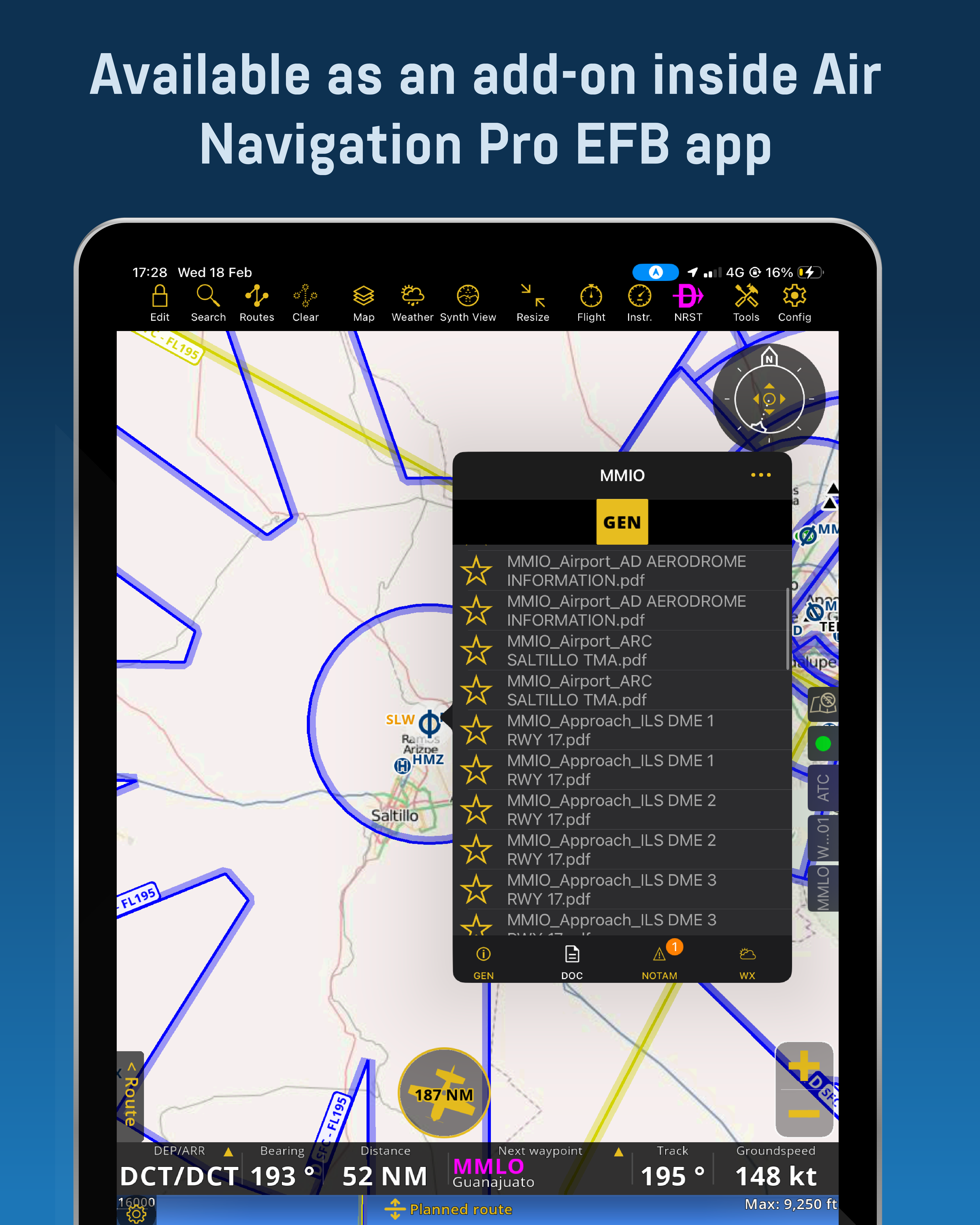 - Air Navigation Pro Users: Apple device (iPad or iPhone); Android device (tablet or phone) with a valid Air Navigation Pro subscription, allowing activation on up to 3 devices per account, in any combination.