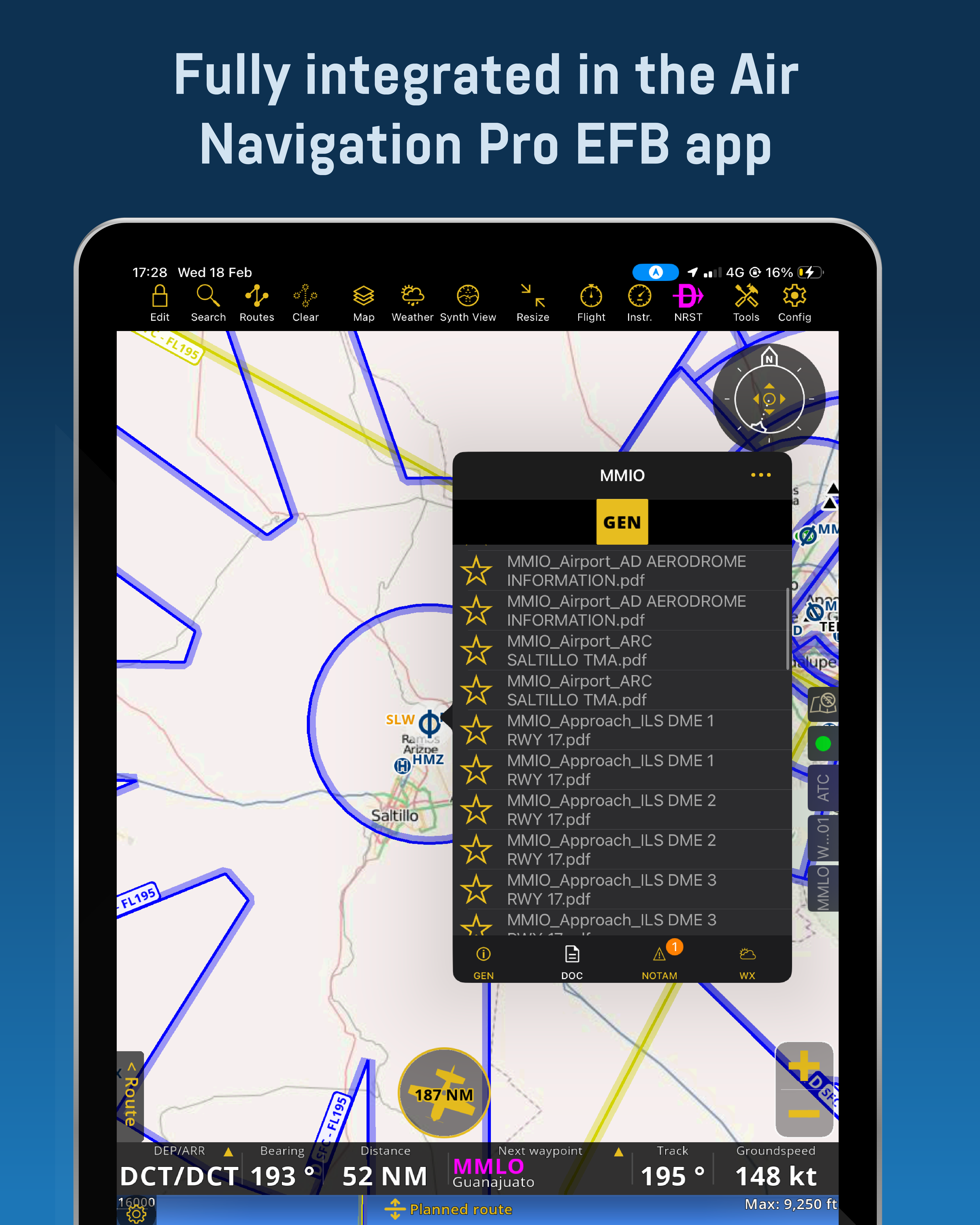 Mexico AIP Charts package contains the complete AIP published by SENEAM, covering all controlled airports and applicable uncontrolled aerodromes in Mexico. This package is designed for use with Jetstream Charts app available for iPad (any model), the ForeFlight EFB app available for Apple devices (iPad or iPhone) and the Air Navigation Pro app available for Apple and Android devices (tablet or phone); a valid ForeFlight or Air Navigation Pro subscription is required. Please visit ForeFlight website to purchase a subscription or add to your cart an Air Navigation Pro subscription within our website for your convenience.